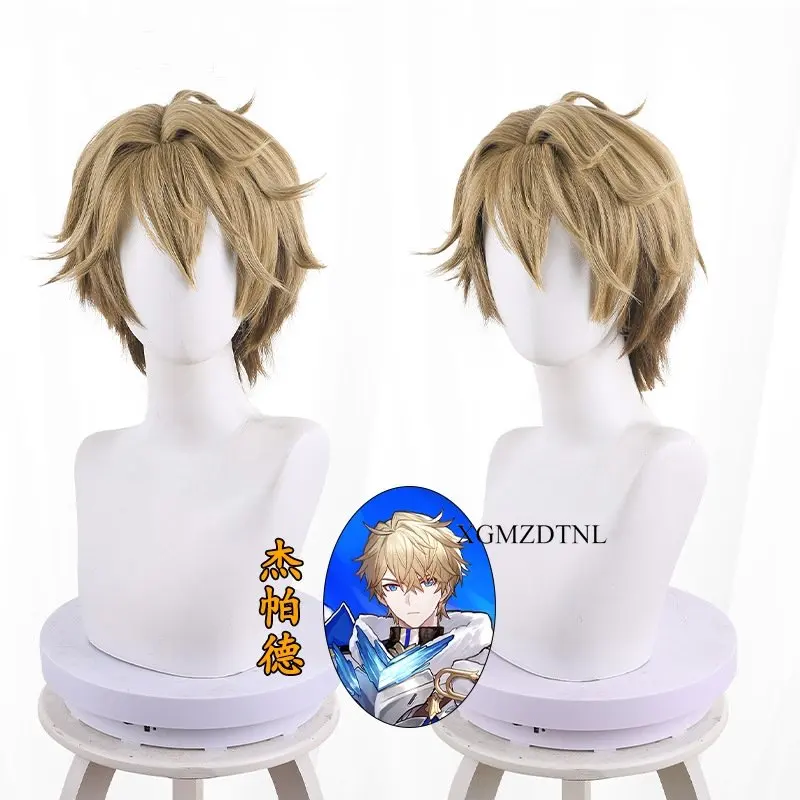 Парик для косплея джепарда Honkai: Star Rail, с золотистыми и коричневыми градиентными вывернутыми челками, реквизит для Хэллоуина и карнавала, с шапочкой