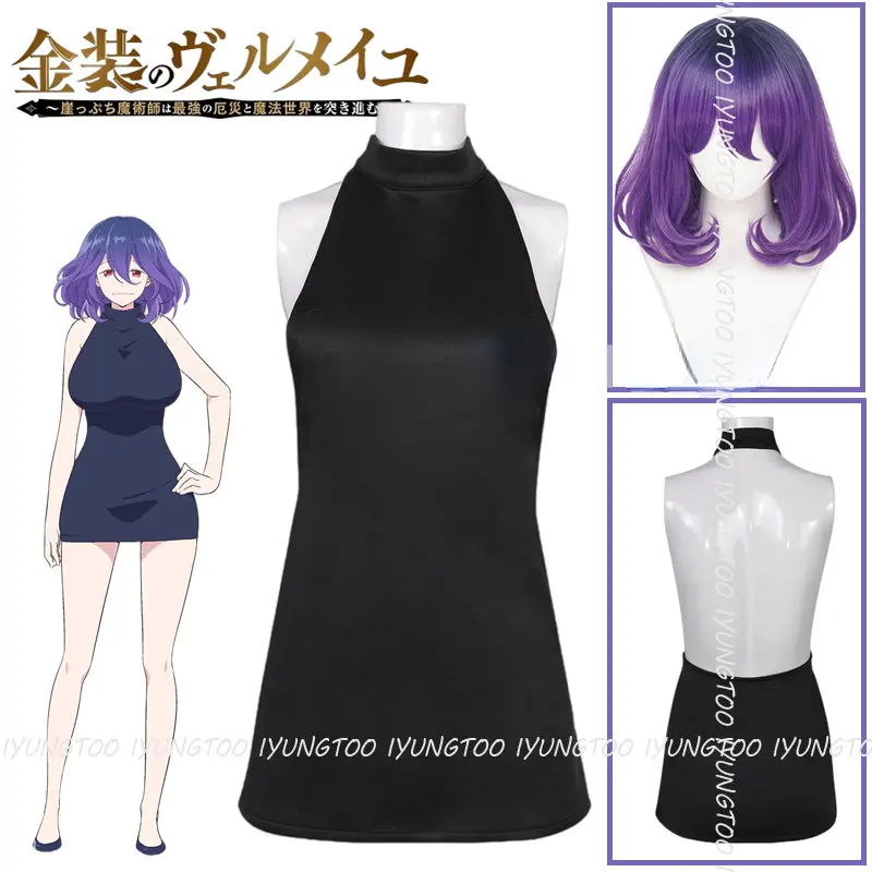 Парик для косплея из аниме kinvenu No Vermeil, черное платье, фиолетовые короткие волосы с градиентом, золотистый дьявол, золотистый наполненный альт, для женщин