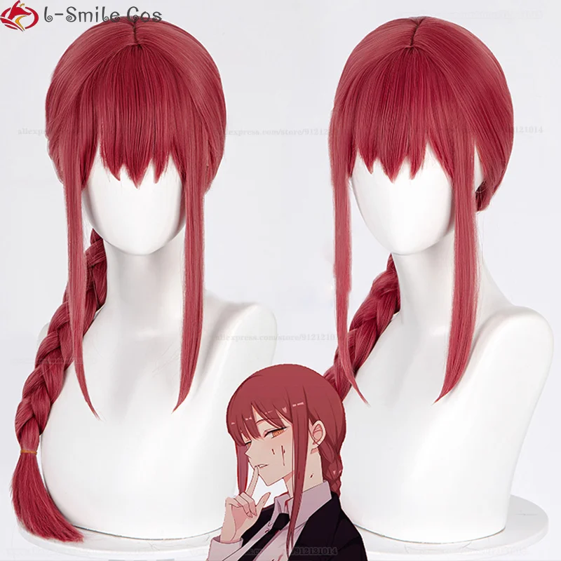 Парик для косплея макима из аниме «Человек бензопила», термостойкие синтетические волосы с красной оплеткой, для косплея, с шапочкой