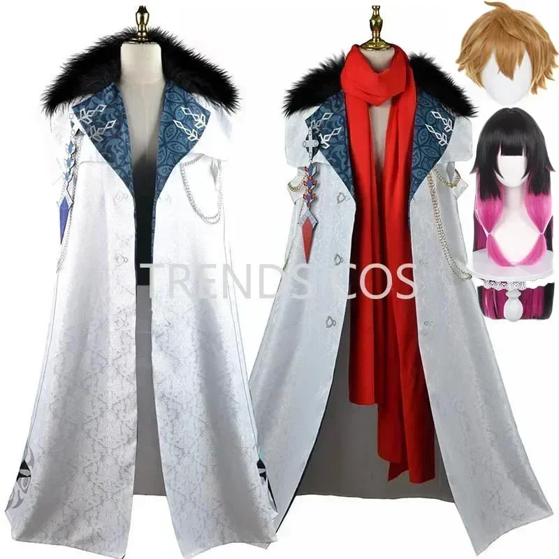 Парик для косплея Fatui Harbingers, тартаглия Коломбина, арлеквин II, доктор плащ, шарф, парик
