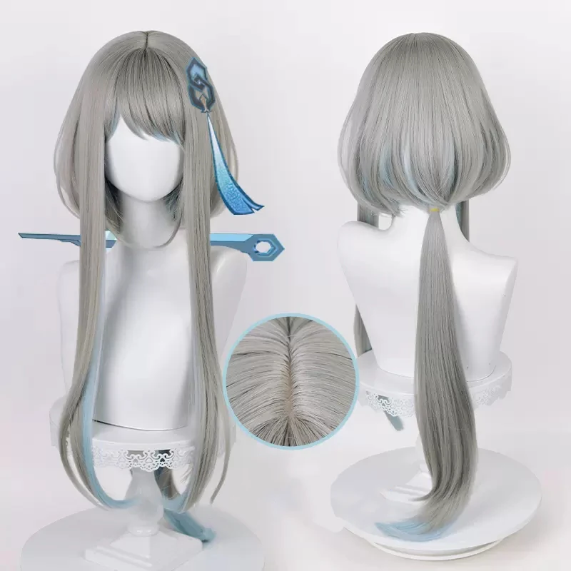 Парик для косплея Genshin Impact Guizhong длиной 90 см, серый, Стандартный, синий, термостойкий синтетический парик