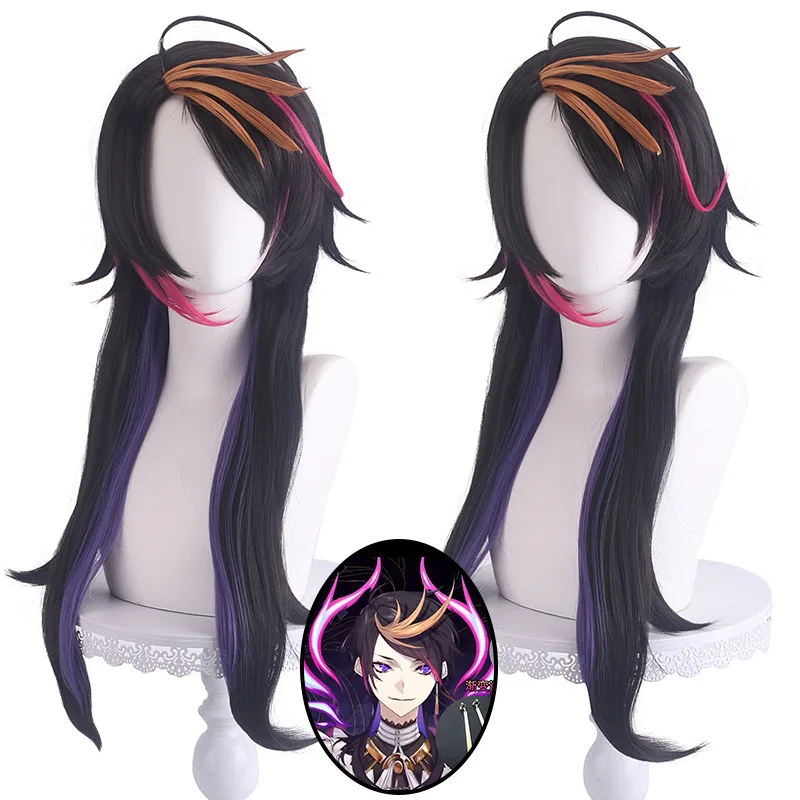 Парик для косплея VTuber NIJISANJI Shu yамино, длинные черные и фиолетовые аниме парики, термостойкие синтетические волосы