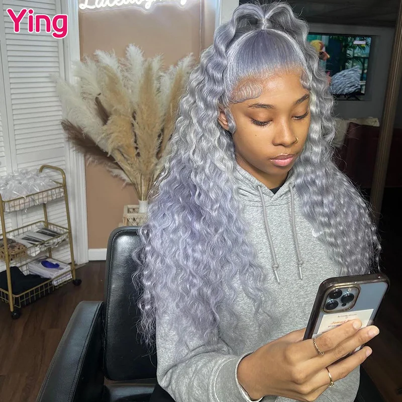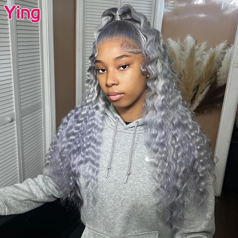Парик женский из натуральных волос с глубокой волной, 13x 4, серебристо-серый