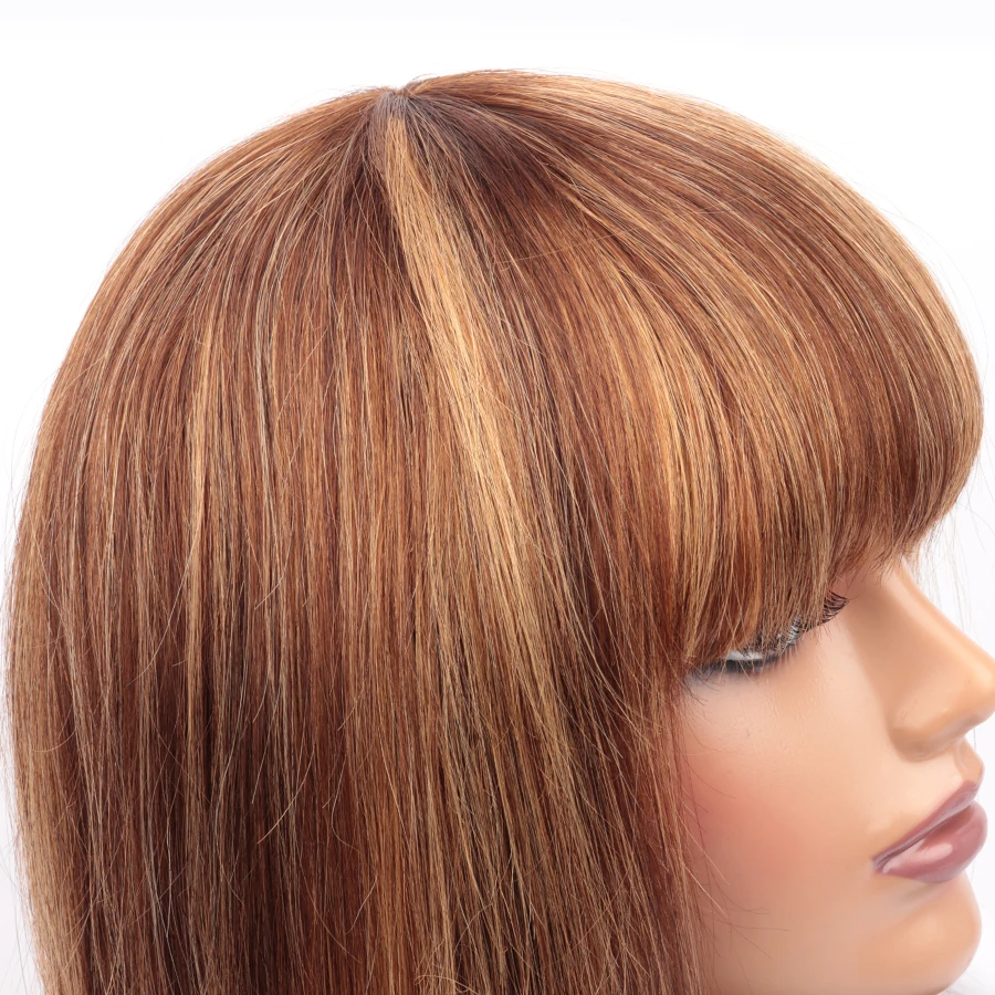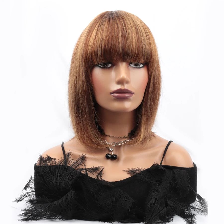 Парик из натуральных человеческих волос с короткой челкой, золотисто-коричневый, P4/27