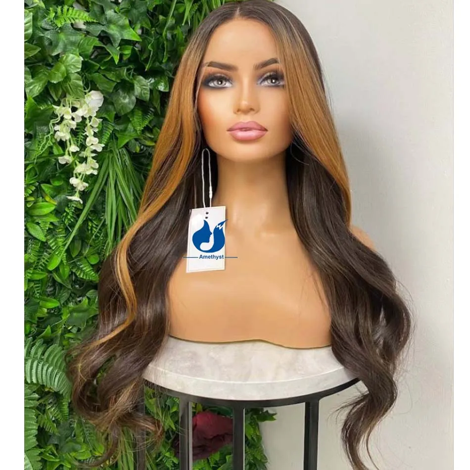 Парик из человеческих волос с аметистом, коричневым и светлым оттенком, 13x4