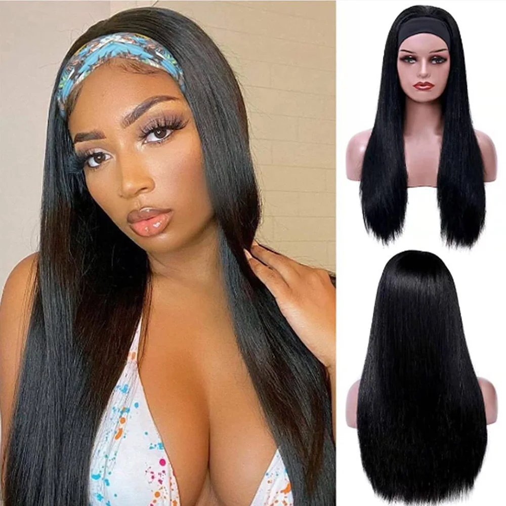 Парик с головной повязкой s для женщин, бразильские прямые человеческие волосы, парики с ремешком на голову, дешевые человеческие волосы естественного цвета