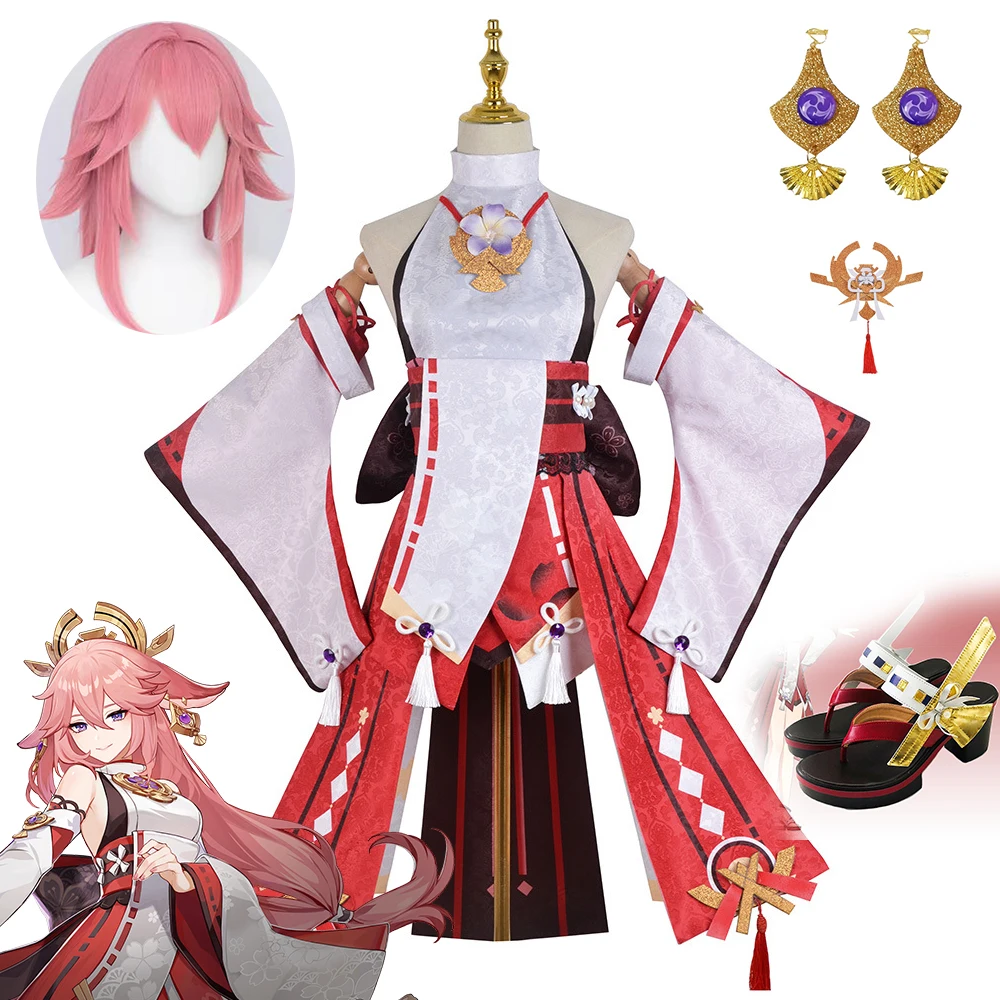 Парик Guuji Yae, головной убор, хвост, игровой костюм Genshin Impact Yae Miko, костюм для косплея Guuji Yae, модные наряды, полный комплект Guuji
