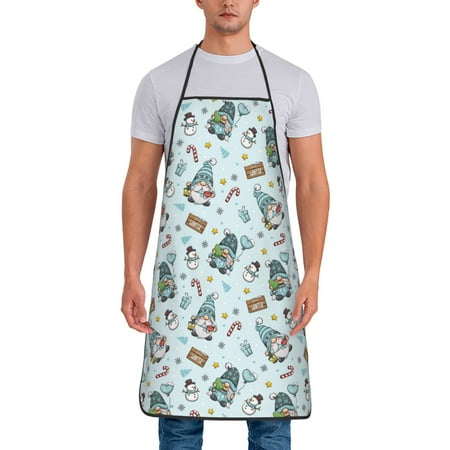 Wukai Winter Wonderland Light Blue Print Aprons Adjustable Bib Aprons Cooking Kitchen Chef Apron for Women and Men