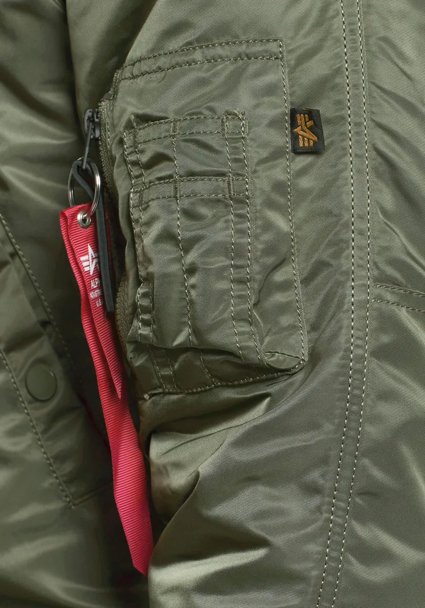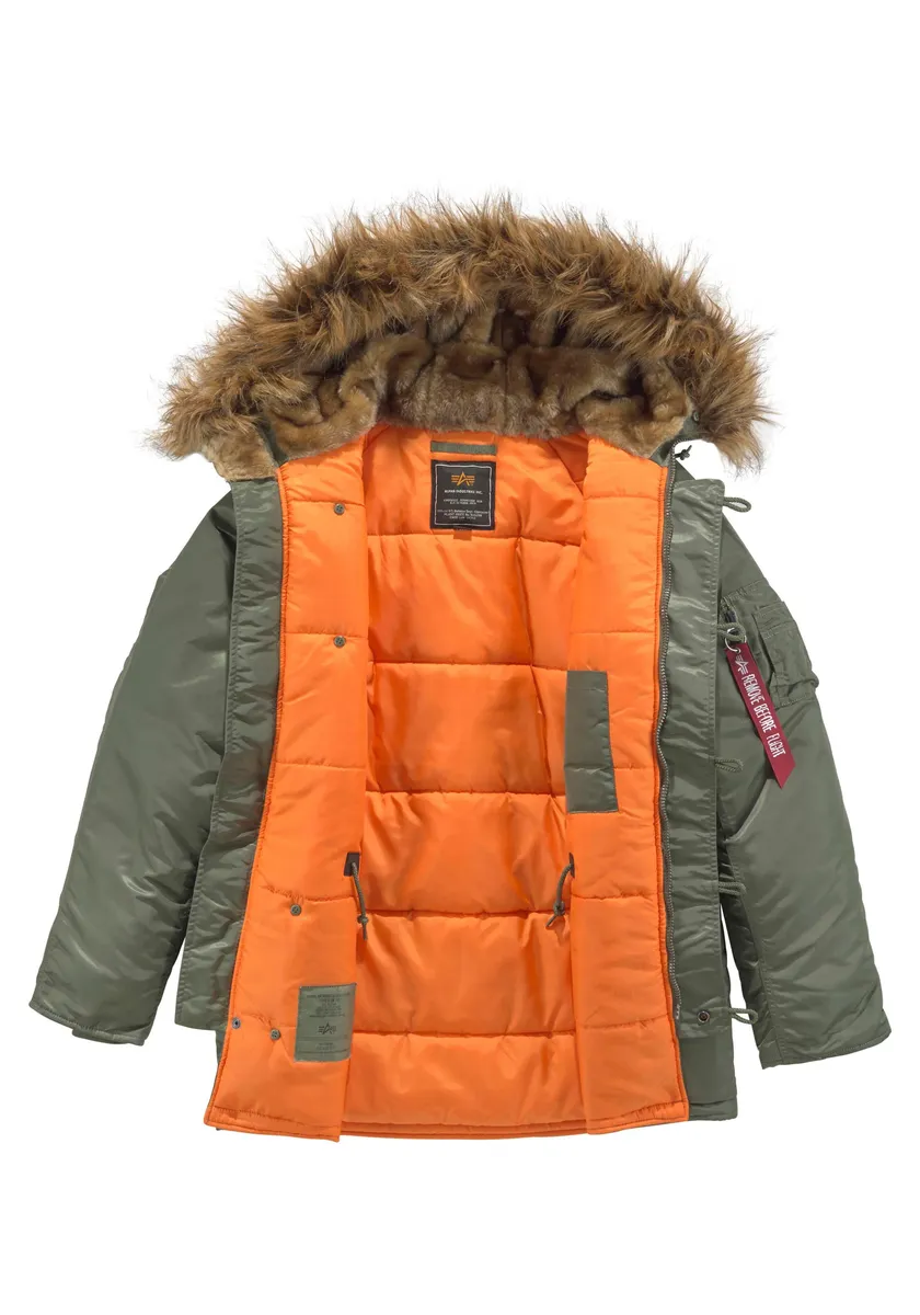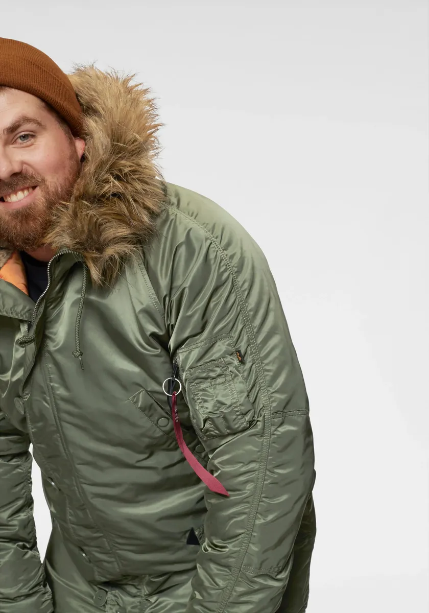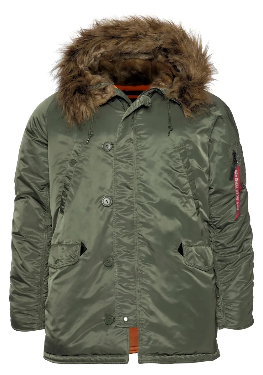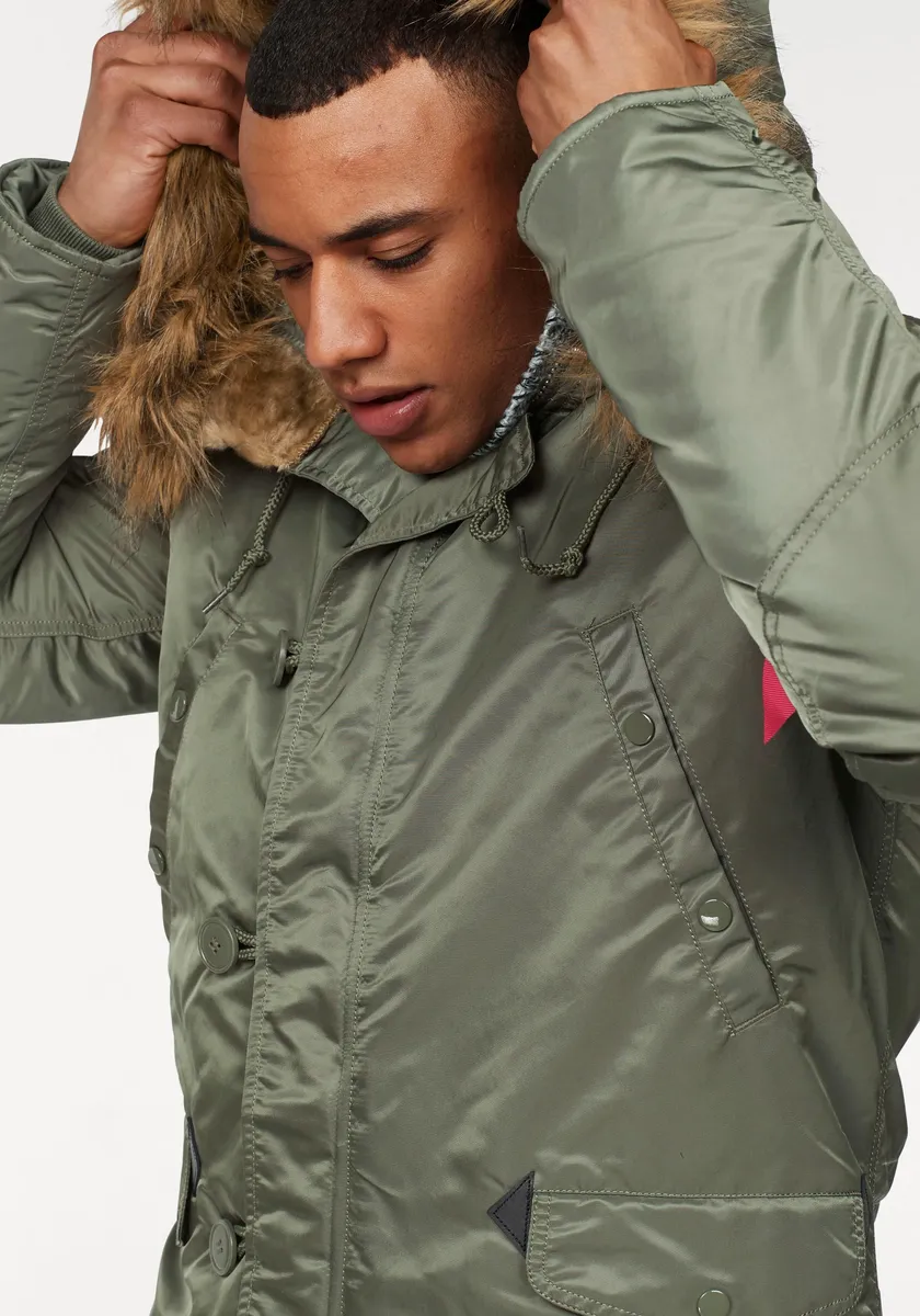 Парка Alpha Industries "N3B VF 59" с капюшоном и съемным воротником из искусственного меха, зеленый