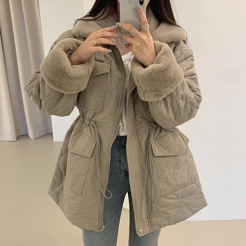 Парки с отложным воротником для женщин, осенне-зимние новые модные пальто с длинными рукавами, повседневные куртки на молнии и шнурке one size абрикосовый