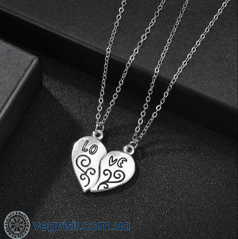 Парные кулоны для двоих влюбленных две половинки сердца LOVE