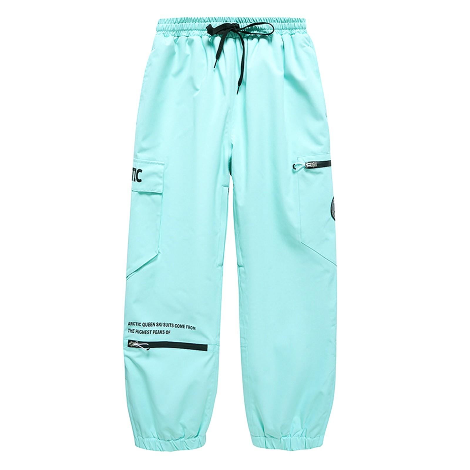 Парные однотонные теплые толстые уличные водонепроницаемые лыжные брюки с карманами XS циан