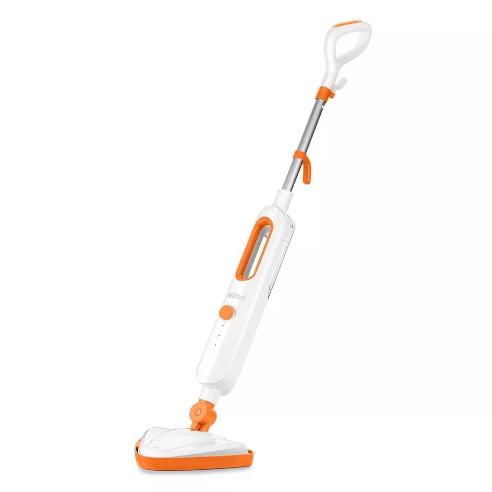 Паровая швабра Kitfort КТ-1048-2 1.3 кВт, белый/оранжевый (КТ-1048-2), КТ-1048-2