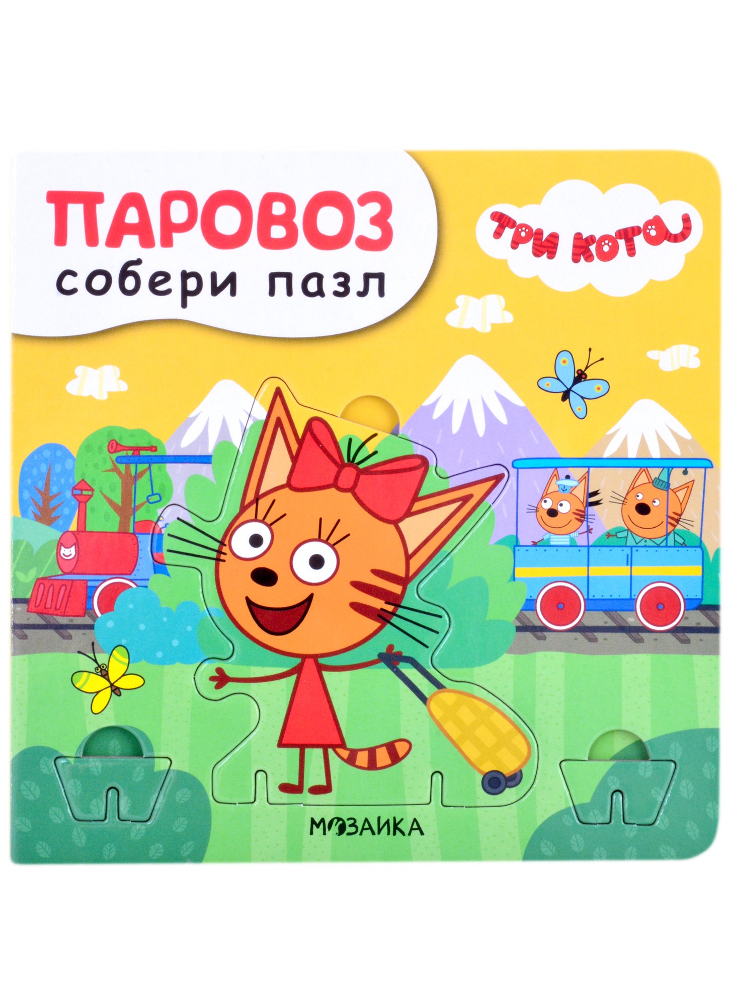 Три кота. Собери пазл. ПаровозПаровоз (Три кота. Собери пазл), книга с пазламиВ книге «Паровоз» из серии «Три кота. Собери пазл» не только найдет занимательные пазлы, но и встретит героев любимого мультсериала «Три кота». Он почувствует себя настоящим конструктором — из четырех картинок-пазлов, которые вынимаются из плотных картонных страничек, он соберет большой поезд. А забавные стихи расскажут об увлекательном железнодорожном путешествии семьи котов.На обложке малыш найдет фигурку Карамельки и специальные ножки-подставки. Соберите всю серию, и ребенок с удовольствием будет играть с 3d фигурками Коржика, Карамельки и Компота.Занятия по книге способствуют развитию речи, фантазии, внимания, памяти и мелкой моторики рук.
