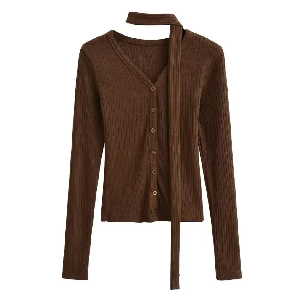 Женский кашемировый свитер с v-образным вырезом в европейском и американском стиле на осень-зиму с декоративным шарфом-кардиганом