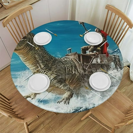 Sheronv Dinosaur Man Round Tablecloth Stain-Resistant Washable 100% Polyester for Picnic Dining Kitchen Farmhouse Elastic Edge 31 -35
