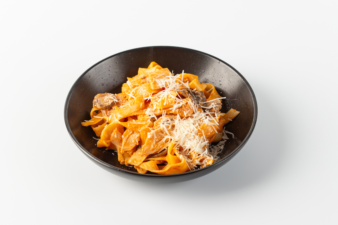 Паста Фетучини с индейкой и грибами в сливочно-томатном соусе