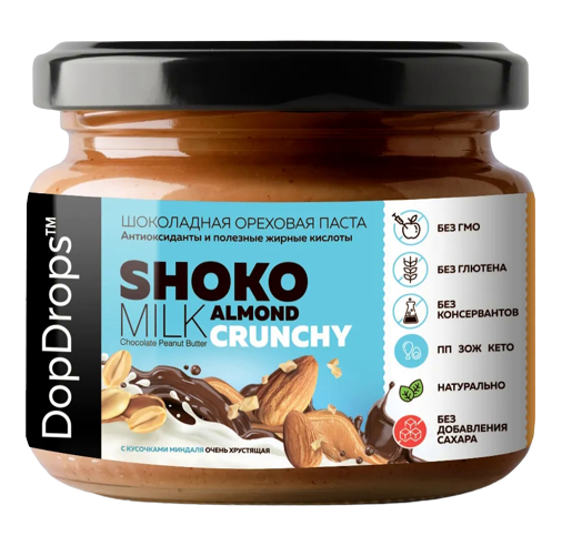 Паста шоколадная ореховая DopDrops™ ShokoMILK Almond Butter Crunchy (250 грамм)