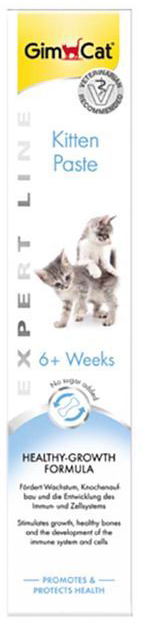 Паста Expert Line Kitten — обеспечение основы длительной жизниОдними из самых дорогих воспоминаний остаются моменты воспитания маленького котенка, наблюдение за тем, с какой любознательностью он покорял мир, все исследовал, тренировался прыгать, и так быстро рос! Но все-таки владелец кота подсознательно волнуется, действительно животное получает все, чтобы с забавного питомца стать здоровым, жизнерадостным котом, который до своей старости будет наслаждаться жизнью вместе со своим владельцем. GimCat Expert Line представляет новую пасту для маленьких и шустреньких! Котятам нужно много белков, витаминов и минералов, чтобы они становились большими и сильными. Полезные вещества укрепляют иммунную систему и поддерживают формирование костей и зубов. Паста Kitten создана специально для нужд молодых кошек в возрасте старше шести недель.Формула Healthy-Growth содержит:Оптимальное соотношение кальций-фосфор, способствующее росту и образованию костей и зубов.12 витаминов и микроэлементов: они адаптированы к питательным и энергетическим потребностям молодых кошек и помогают поддерживать здоровую иммунную систему.Льняное масло и рыбий жир: они содержат омега-три и -шесть жирные кислоты, которые обеспечивают эффективную защиту клеток и поддерживают мобильность.Витальный таурин: ключевое питательное вещество для кошек, которое обеспечивает оптимальное развитие их нервной системы, зрения и функции сердца.Яичный желток: для покрытия основной потребности в арахидоновой кислоте.