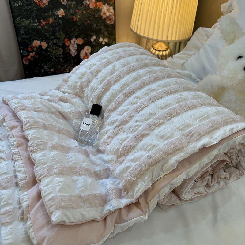 Пастельно-голубое полосатое пузырчатое одеяло с кондиционером, одинарное, приятное к коже, тонкое одеяло, стираемое, хлопковое, полуторное, легкое, летнее, прохладное одеяло 150x200cm