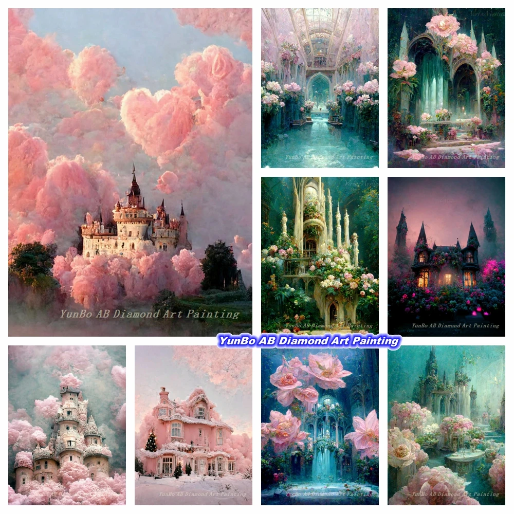 Пастельные цветы, водопад AB, алмазная живопись, лес, замок, пейзажи, вышивка крестиком, искусственная мозаика, вышивка на стену, домашний декор