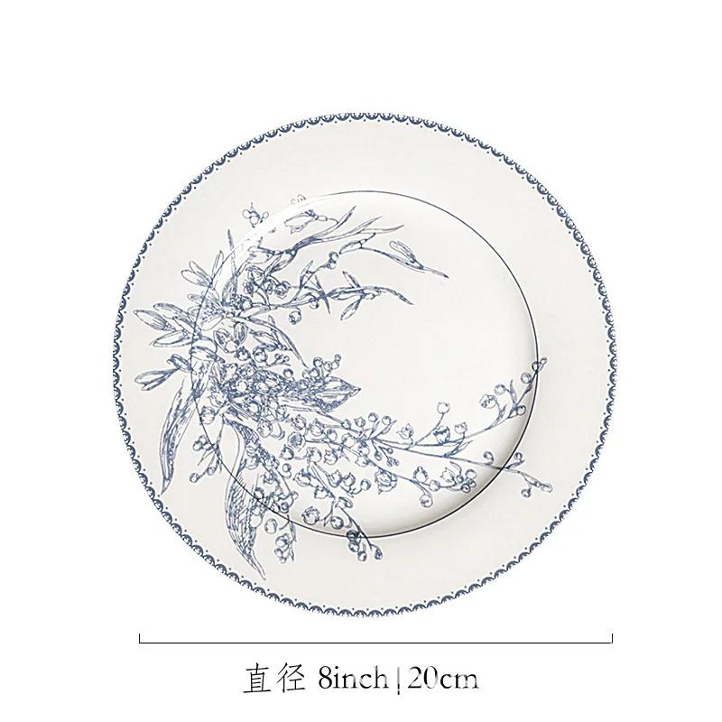 Пасторальная керамическая тарелка серии «Ландыш», костяной фарфор, столовые приборы, украшение для рабочего стола, круглая тарелка, украшение для дома