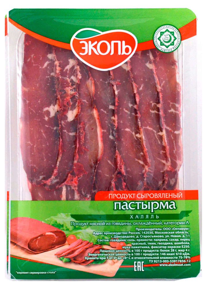 Пастырма ЭКОЛЬ из говядины Халяль сыровяленый нарезка, вес