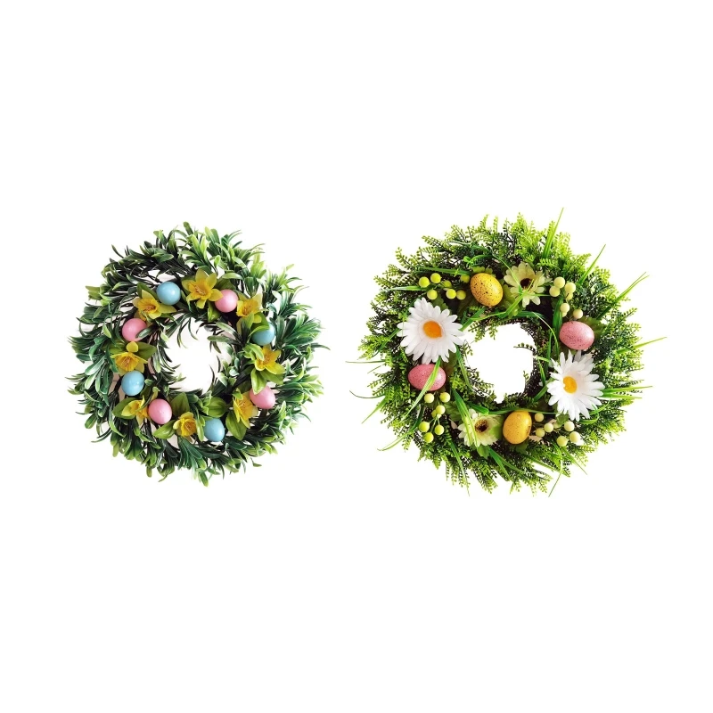 Пасхальный венок K3NA для входной двери, украшенный искусственными яйцами, цветами, венки, украшение для стены, окна, фермерского дома