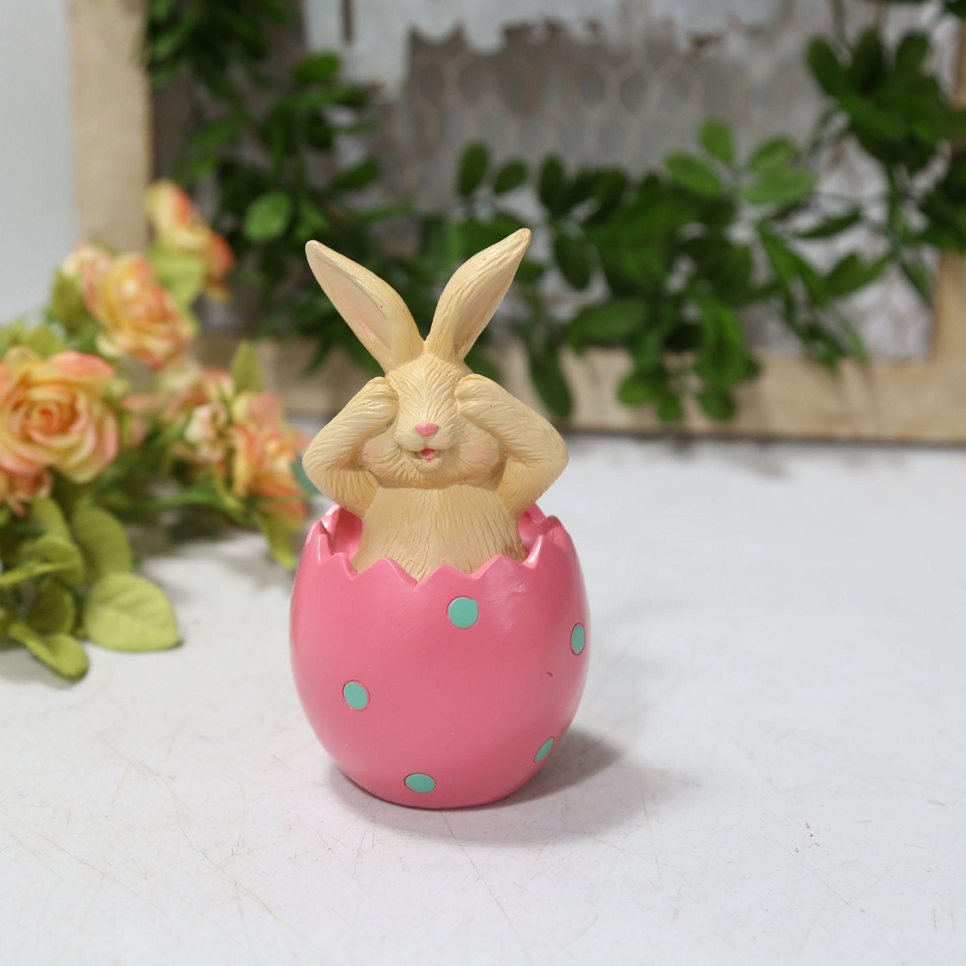 Пасхальный кролик из смолы, сидящий на яичной скорлупе, украшения для стола, не слышащий, не видящий, не говорящий, красочный кролик, счастливого пасхального дня, домашний декор розовый