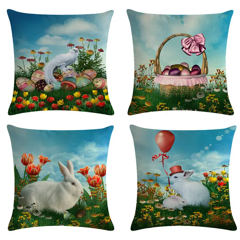 Пасхальный чехол для подушки с изображением кролика и яиц, чехол для дивана, спальни, декоративный чехол для подушки для гостиной, украшение...
