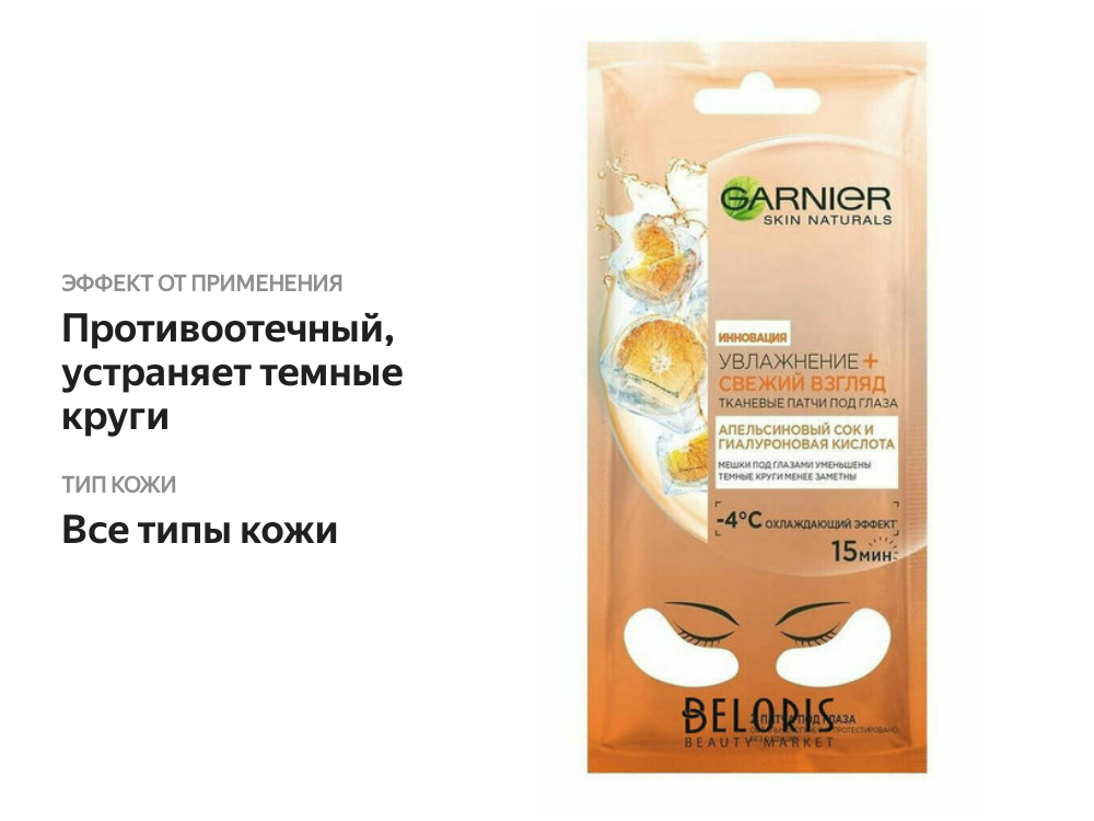 Патчи тканевые Garnier под глаза Увлажнение + свежий взгляд с гиалуроновой кислотой против мешков 6 г 1 пар