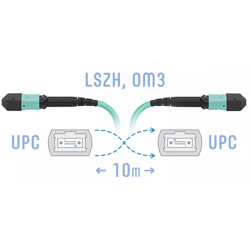 Патч-корд оптический SNR, MPO/UPC-MPO/UPC, многомодовый, 50/125, OM3, одинарный, 10м, голубой (SNR-PC-MPO/UPC-MPO/UPC-FF-MM-12F-10m), Бирюзовый