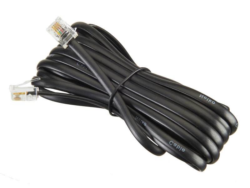 Патч-корд удлинитель телефонный, 5 м, RJ11-RJ11, черный, CU, плоский, Netko (TEC-05M-B-PB)