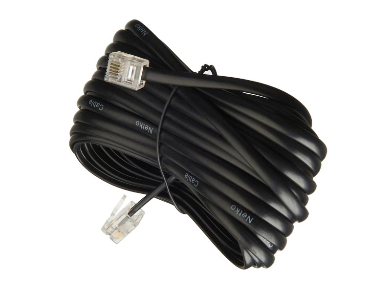 Патч-корд удлинитель телефонный, 7 м, RJ11-RJ11, черный, CU, плоский, Netko (TEC-07M-B-PHP)
