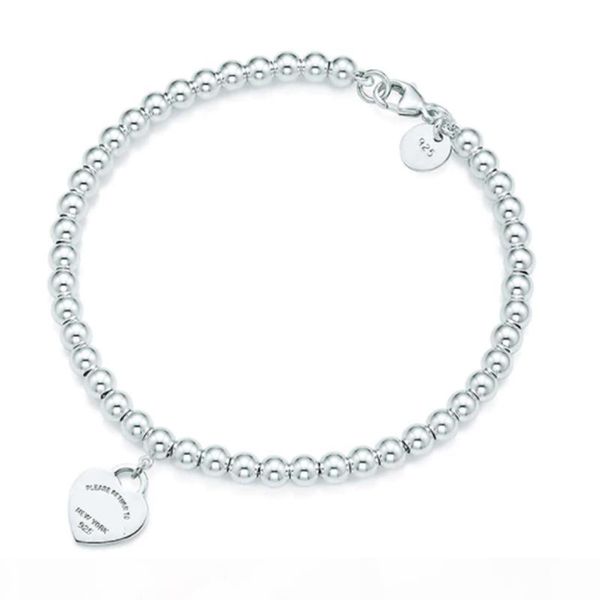 100% 925 silver pendant tag bracelets t genuine charm love heart bead bracelet original female men jewelry personality gift, Black