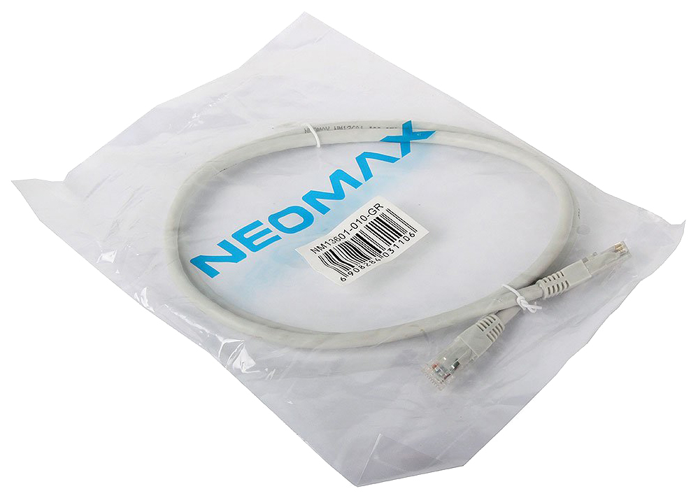 Патч-корд UTP кат.6 1м, RJ45-RJ45, серый, Neomax (NM13601-010), NM13601-010
