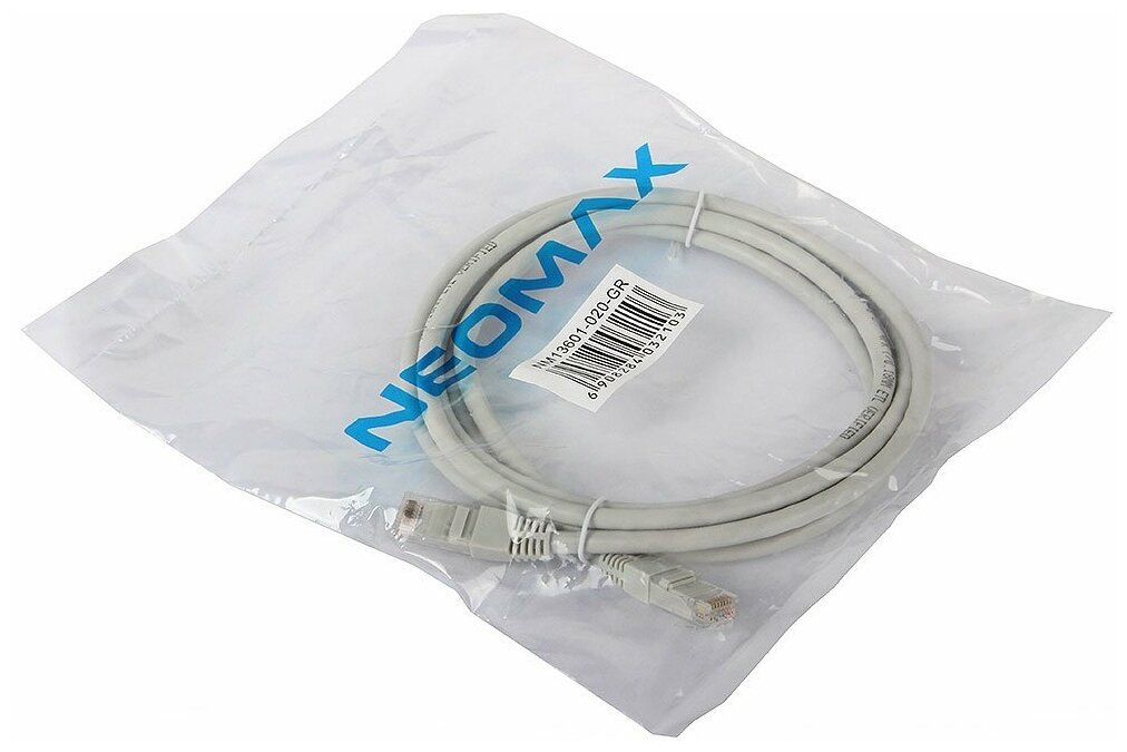 Патч-корд UTP кат.6 2м, RJ45-RJ45, серый, Neomax (NM13601-020), NM13601-020