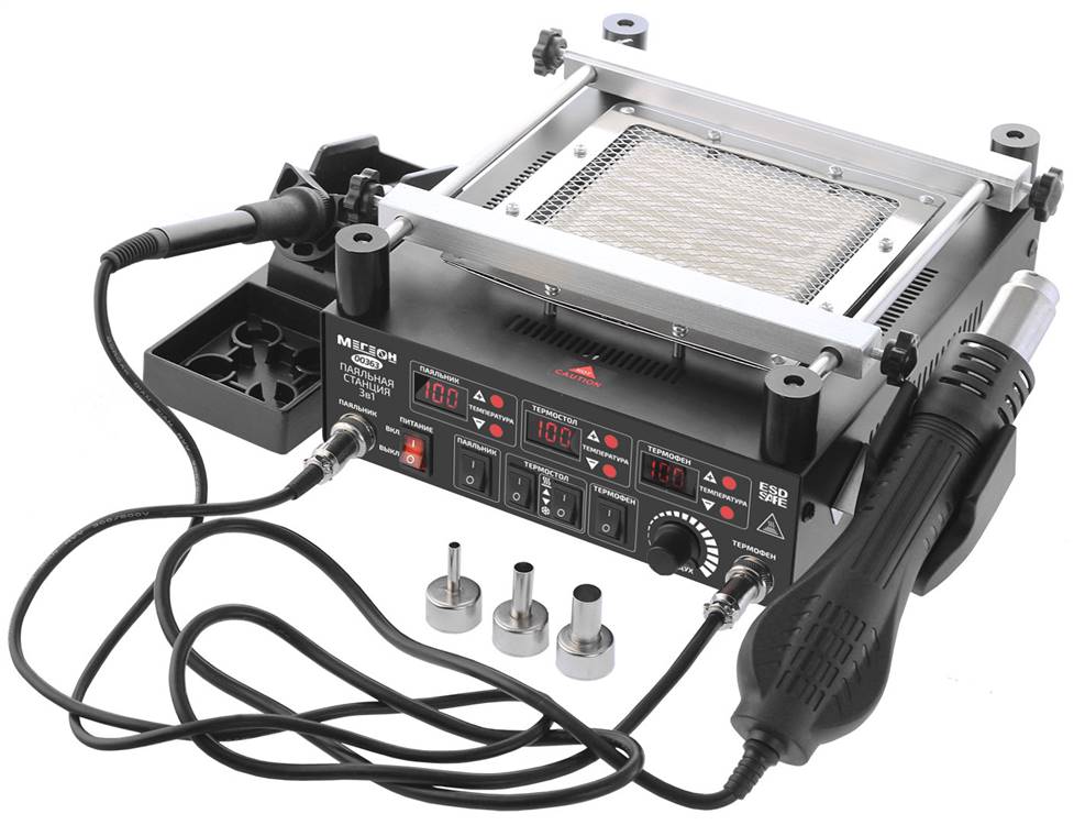 Паяльная станция МЕГЕОН 00363 цифровая, 3 в 1, 00363