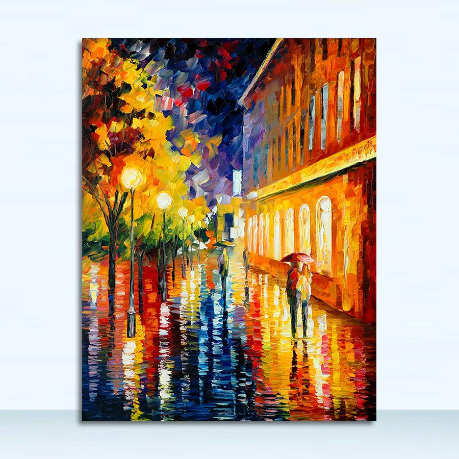 Пейзажный постер, картина маслом на холсте, современная настенная картина для гостиной, HD печать, настенная живопись в стиле поп-арт, романтическая пара, день дождя, улица 40x50cm No Frame