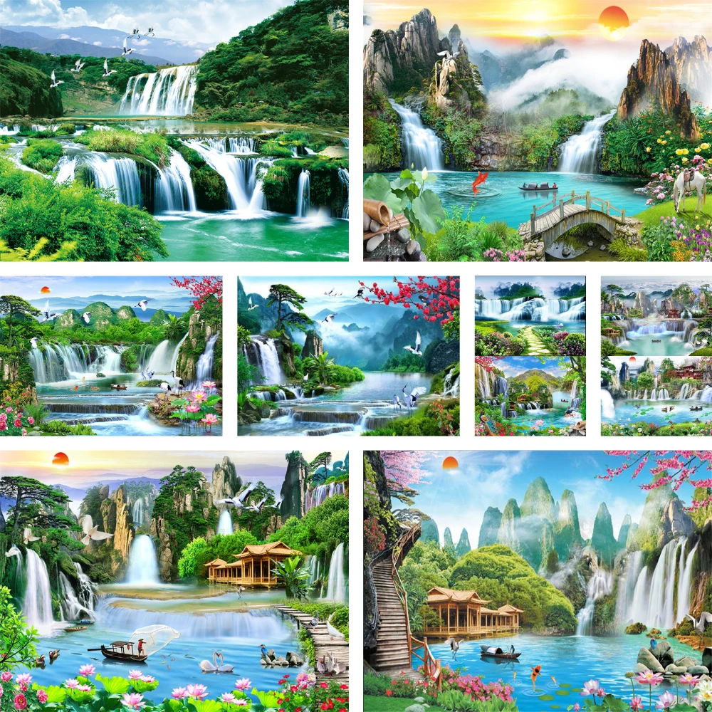 Пейзаж, водопад, зеленая Живопись Набор цифр, масляные краски 50*70, картина по номерам, лофт, Настенная картина для детей, ручная работа