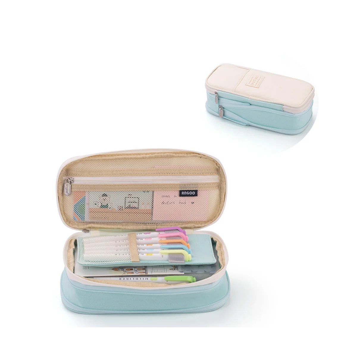 Пеналы ANGOO большой емкости, искусственная коробка для девочек, офисные студенческие канцелярские принадлежности, органайзер, школьные принадлежности