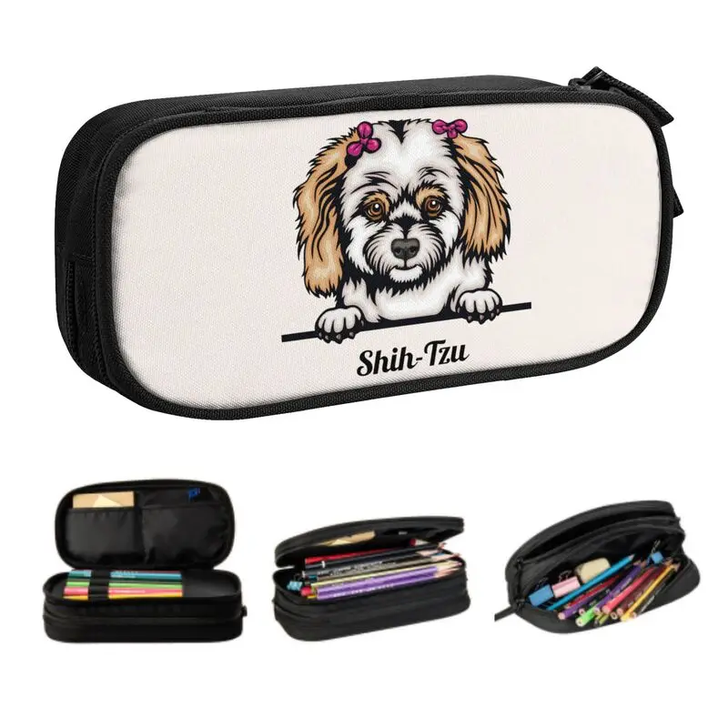 Пеналы Kawaii Peeking Dog Shih Tzu для девочек и мальчиков, большая емкость, пенал, канцелярские принадлежности