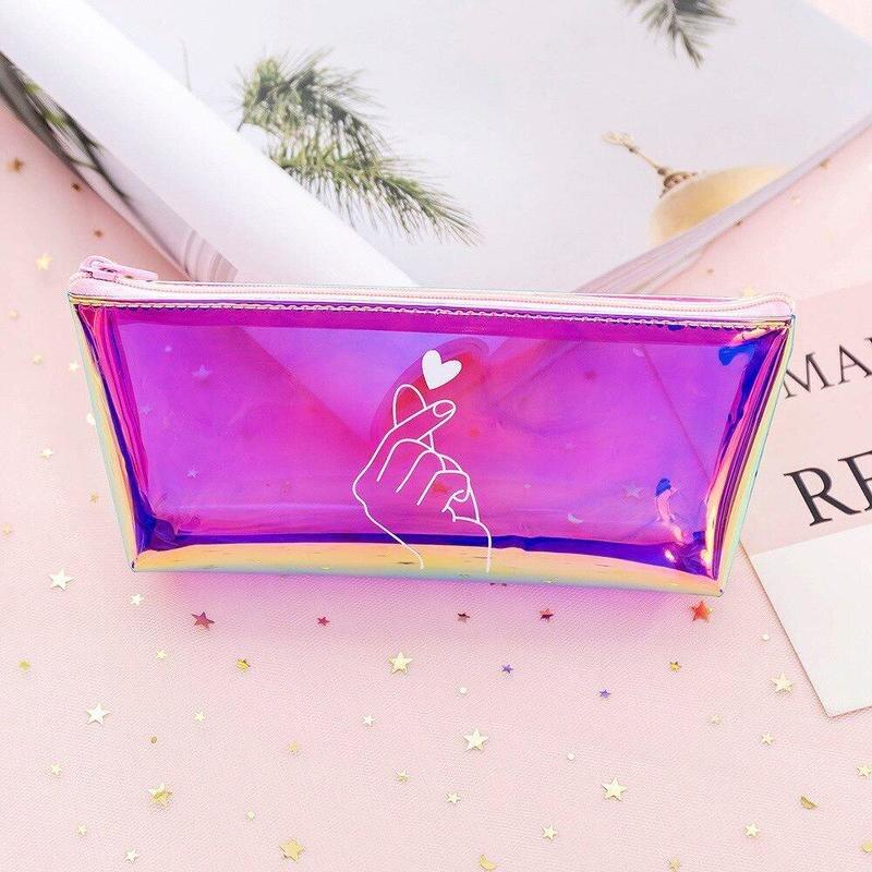 Пенал Контейнер-Органайзер Лазерный Красочный Прозрачный Желейный Мешок Школьные Поставки фиолетовый