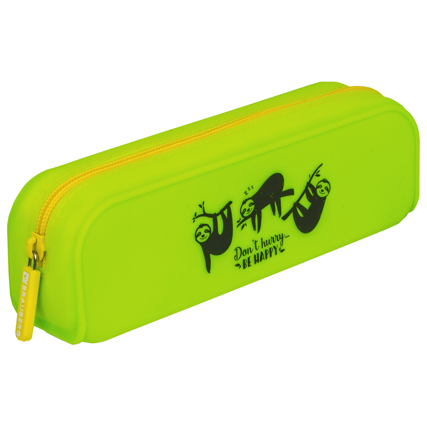 Пенал-косметичка Brauberg Silicone Sloths, 1 отделение, салатовый (229032), Sloths