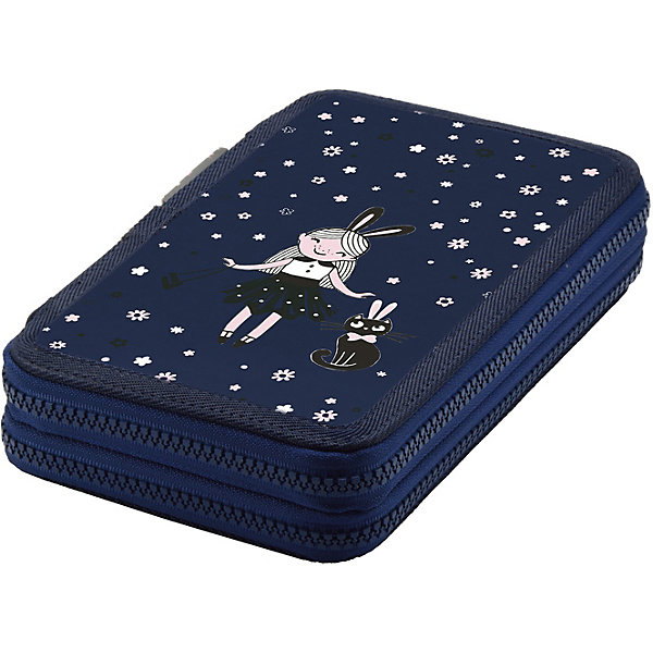 Раскрывающийся пенал с двумя отделениями. Внутри использована резинка, прошитая таким образом, чтобы плотно держать ручки и карандаши. Молния надежно защищает от выпадения канцелярские принадлежности.