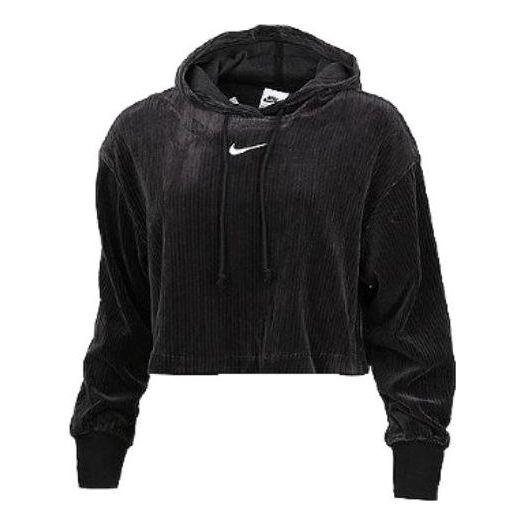 Свитера спортивная одежда велюр укороченный пуловер с капюшоном Nike, черный