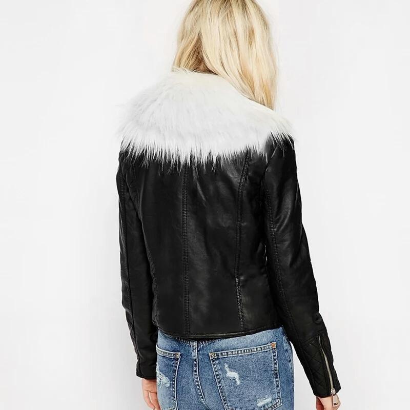 Fashion New Autumn Women Female Big size Long Sleeve High quality V-Neck fur collar Zipper Overcoat Faux fur Loose coat C8971, Black 1