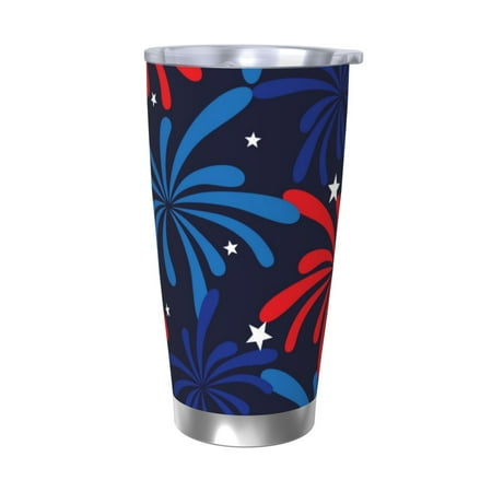 Uemuo Red White Blue Fireworks Print Travel Coffee Mug 20oz Double-walled Car Cup Stainless Steel Insulated Tumbler Leak-proof Travel Cup Reusable Straw Car Cup-Without Straw