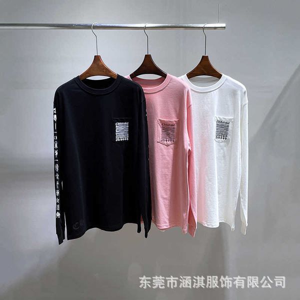 chaopai ch spring and autumn men's and women's same sanskrit cross print medium long t-shirt round neck long sleeve, Black