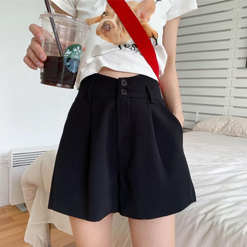 Women' Shorts Fashion All-match Solid High Waist Wide Leg Summer Womens Clothing Korean Loose Button Spliced Simplicity Pants Female, Black